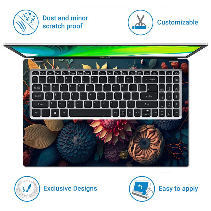 - Complete Protection: Our laptop skins provide full coverage for the top panel and the area around the trackpad, safeguarding your laptop from scratches, scuffs, and minor dings. They act as a protective layer, ensuring your device stays in pristine condition.