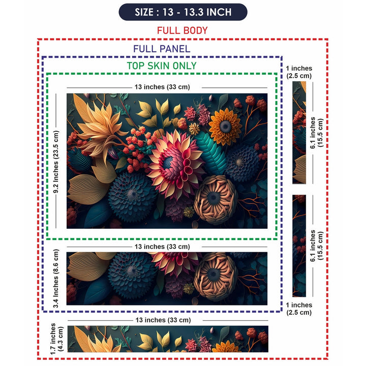 - Full Panel: Full Panel laptop skins provide coverage for the top panel and palmrest area, protecting the most visible parts of your laptop while adding a touch of style and personalization.