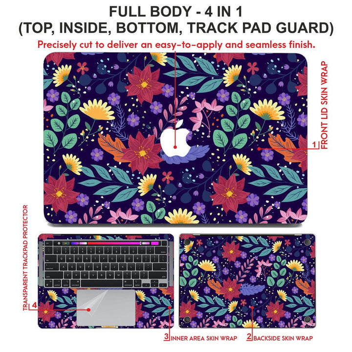 Laptop Skin for Apple MacBook - Multi Floral on Purple