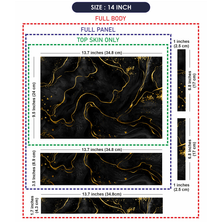 Introducing "Golden Lines on Black Marble" Laptop Skins: Personalize Your Device with Style, Protection, and Your Desired Skin Coverage!