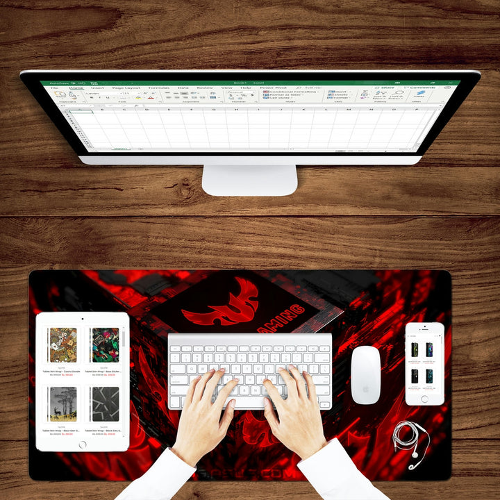 Anti-Slip Desk Mat Gaming Mouse Pad - Red Black Fiery Gaming