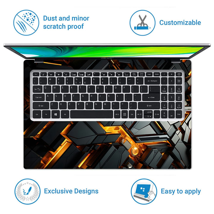 - Complete Protection: Our laptop skins provide full coverage for the top panel and the area around the trackpad, safeguarding your laptop from scratches, scuffs, and minor dings. They act as a protective layer, ensuring your device stays in pristine condition.
