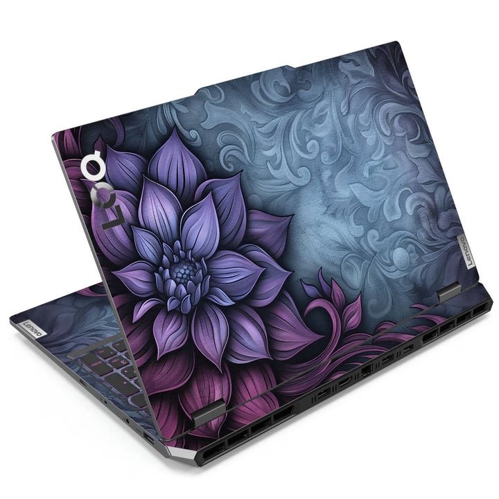 Laptop Skin for Lenovo LOQ - Purple Floral Motif on Gray Background