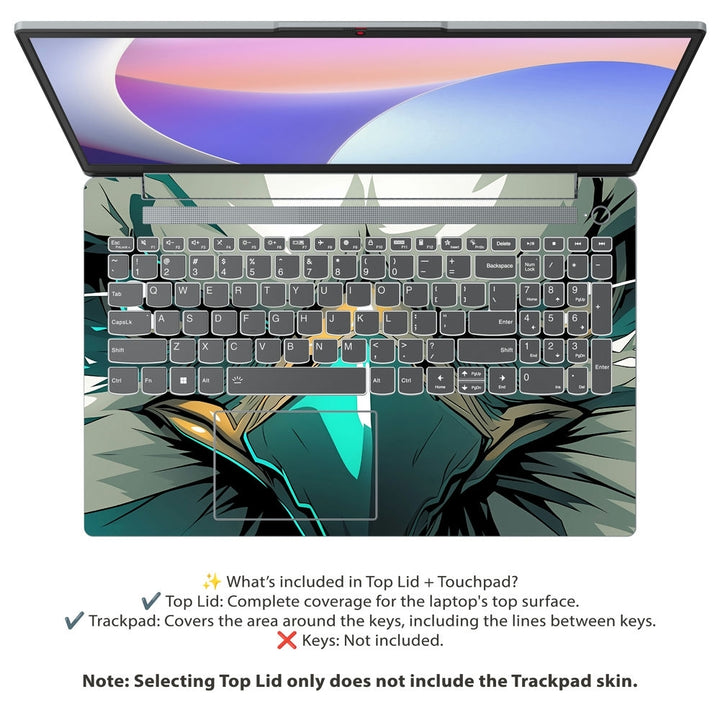 - Top Lid + Touchpad: Extends coverage to the palm rest and keyboard surroundings for complete personalization.