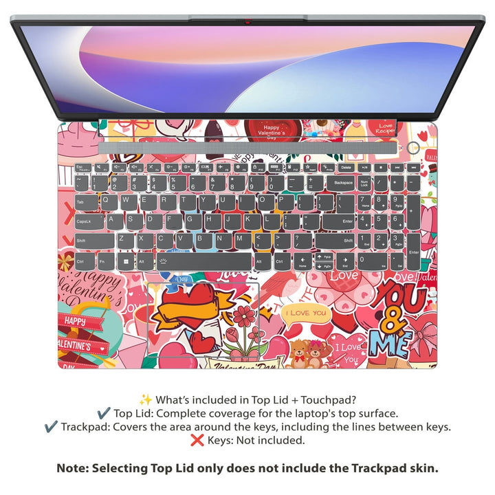 - Superior Protection: The Valentines Day Sticker Bomb skin shields the top panel of your Lenovo laptop, keeping it safe from everyday damage while maintaining a sleek appearance.