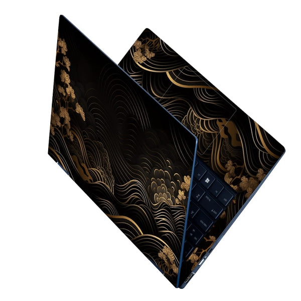 Laptop Skin - Golden Floral Waves on Black