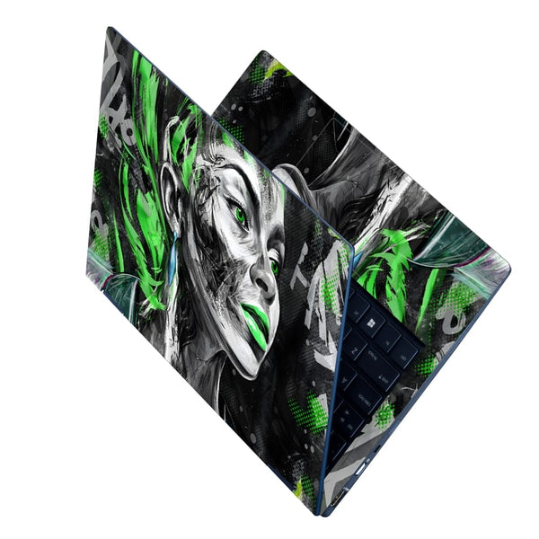 Laptop Skin - Girl Face Green Black Art