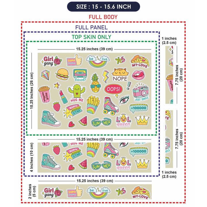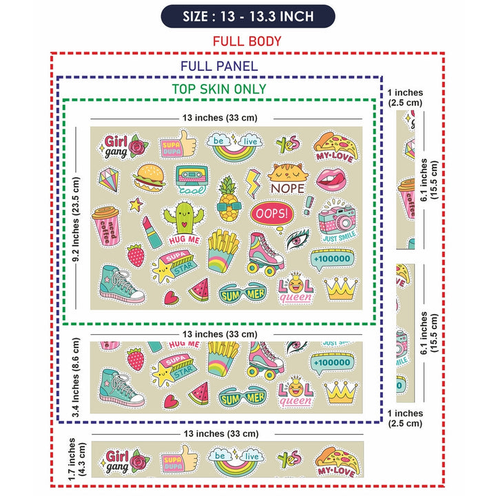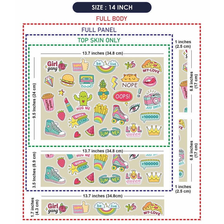 Introducing "Girl Gang Sticker Bomb Cream" Laptop Skins: Personalize Your Device with Style, Protection, and Your Desired Skin Coverage!