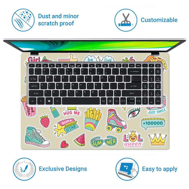 Laptop Skin - Girl Gang Sticker Bomb Cream