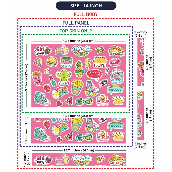Introducing "Girl Gang Sticker Bomb Pink" Laptop Skins: Personalize Your Device with Style, Protection, and Your Desired Skin Coverage!