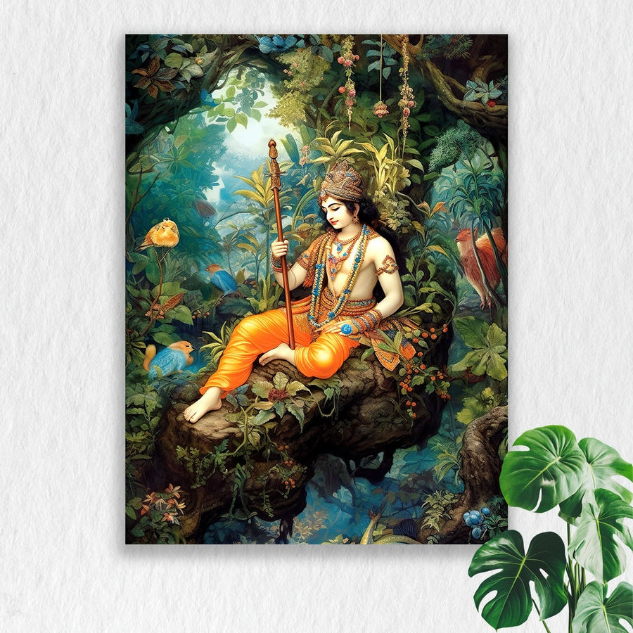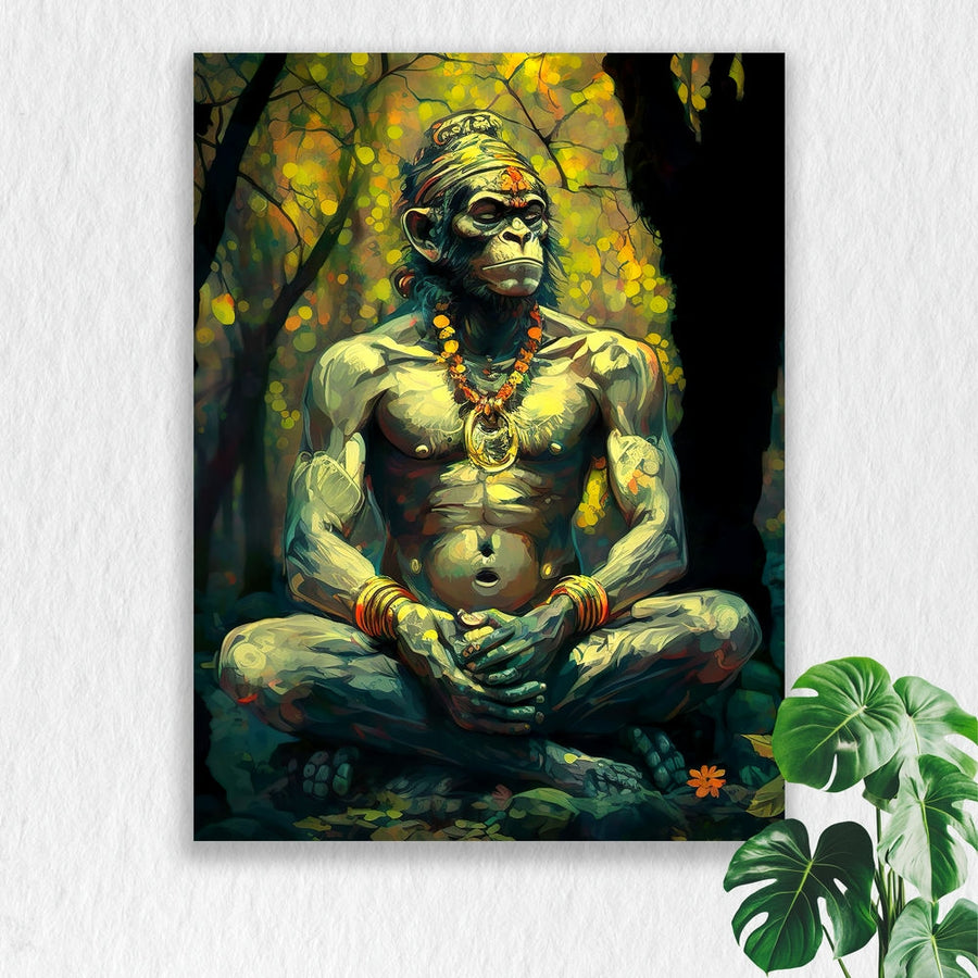 Self Adhesive Textured Vinyl Poster - Lord Hanuman Meditating in Jungle