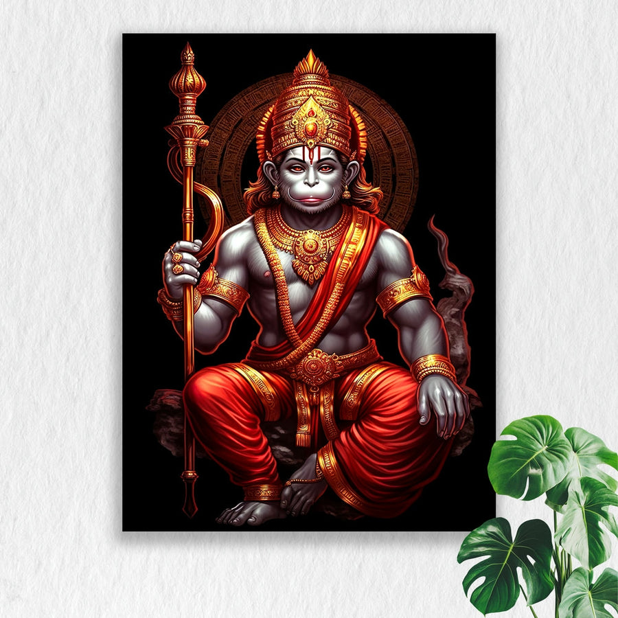 Self Adhesive Textured Vinyl Poster - Lord Hanuman Fierce Red Art