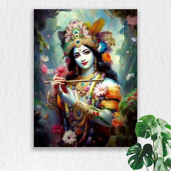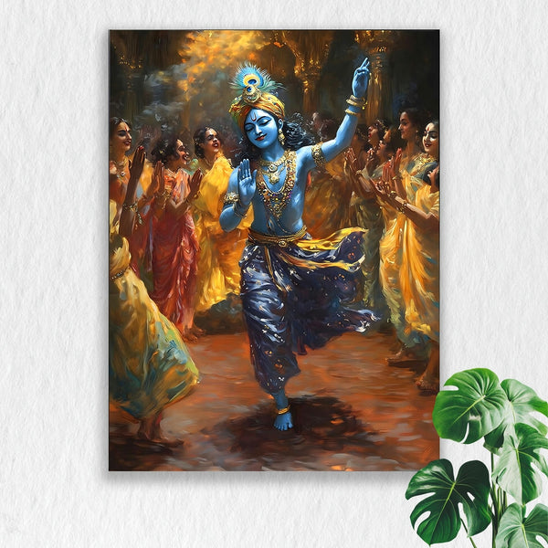 Self Adhesive Textured Vinyl Poster - Krishna Dancing with Devotees
