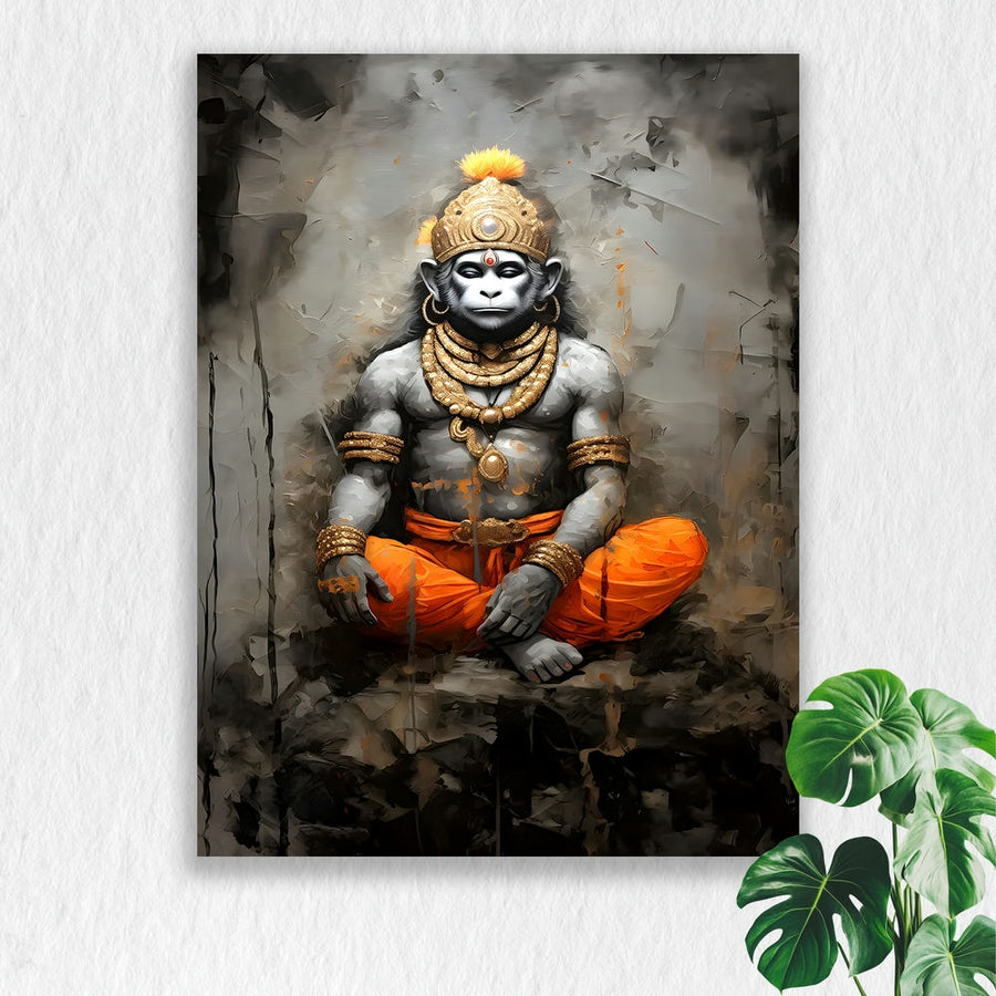 Self Adhesive Textured Vinyl Poster - Lord Hanuman Meditative Sage