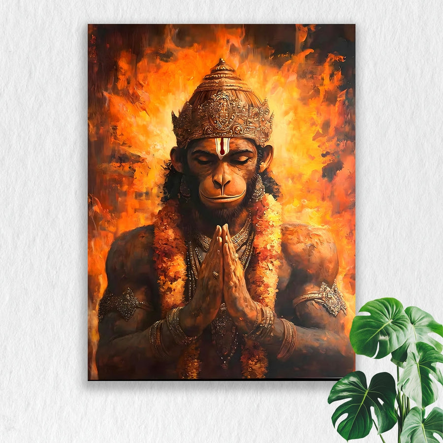 Self Adhesive Textured Vinyl Poster - Lord Hanuman Praying in Flames