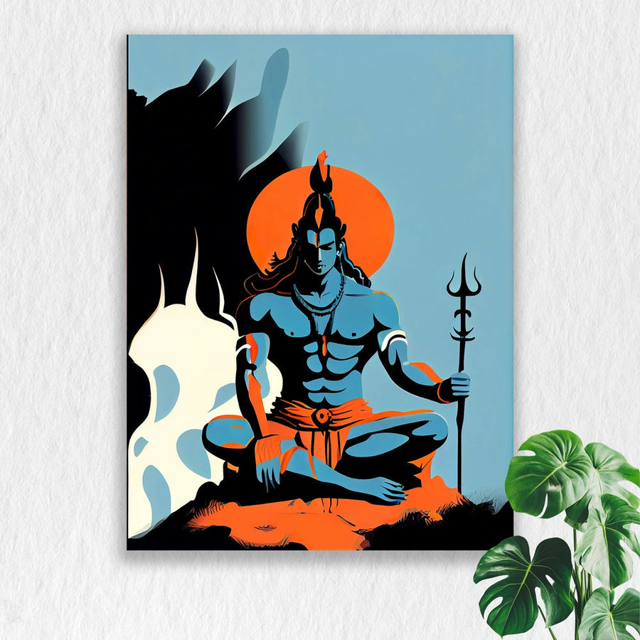 Self Adhesive Textured Vinyl Poster - Minimalist Shiva with Trident