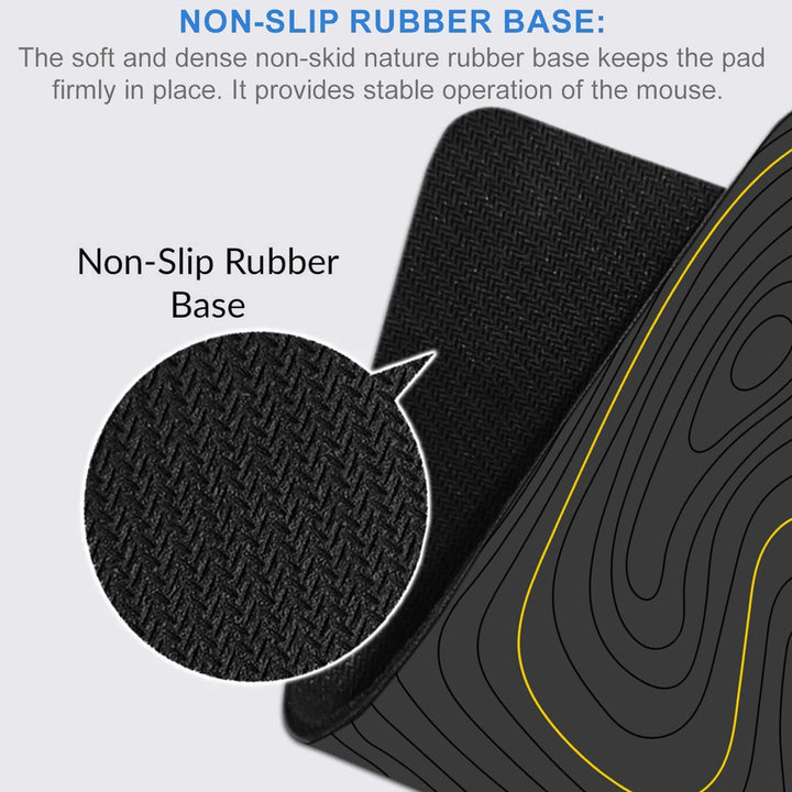 Our mouse pad boasts dimensions of 23 inches in length and 11 inches in width, with a thickness of 3mm, offering ample space for your gaming essentials while maintaining a sleek and convenient size suitable for various setups. Engineered with a non-slippery rubber base, it ensures a stable and secure foundation, preventing unwanted movement during intense gaming sessions or work tasks.