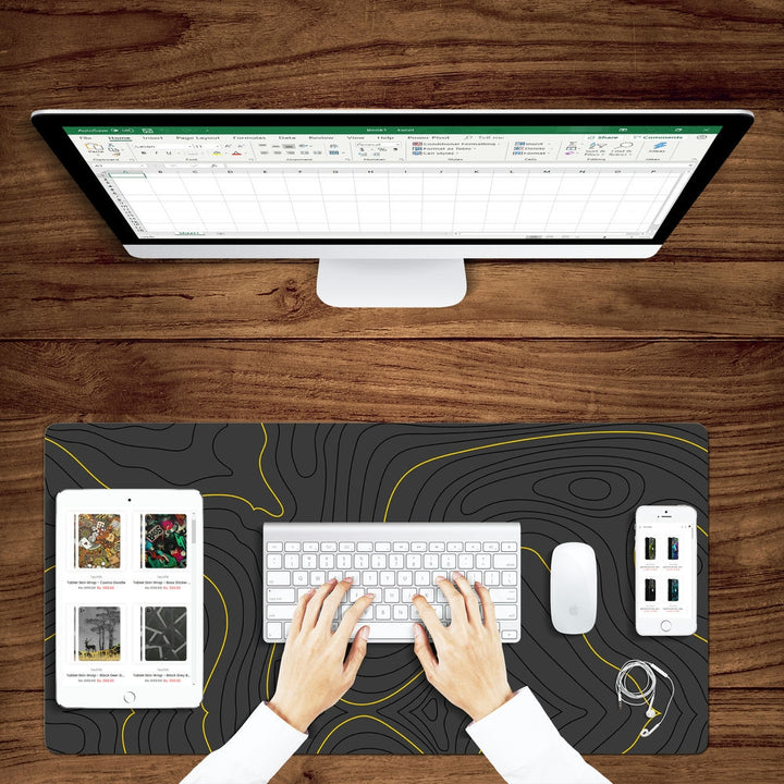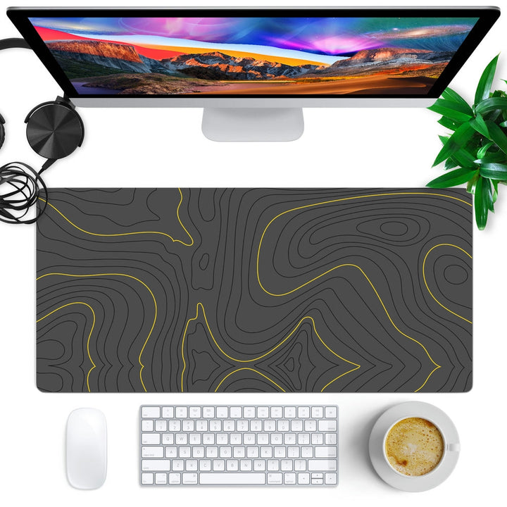 Anti-Slip Desk Mat Gaming Mouse Pad - Yellow and Gray Contour Lines