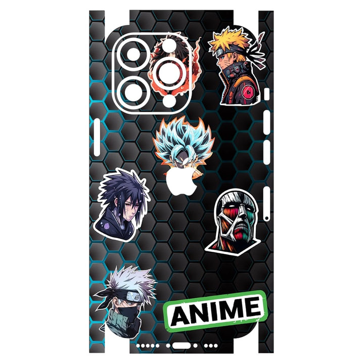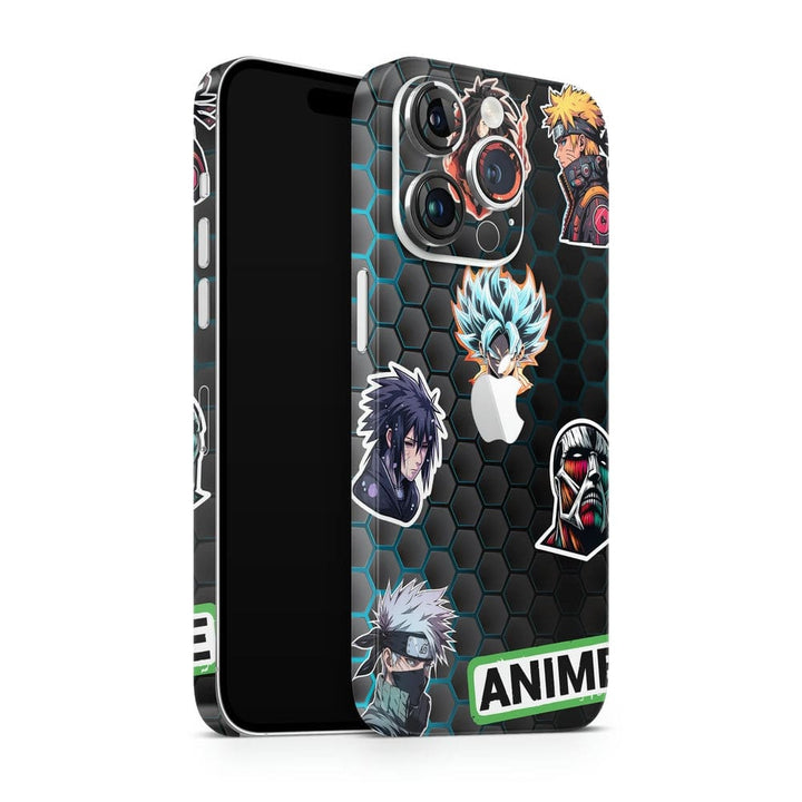 3D Embossed Skin Wrap for Apple iPhone - Anime Sticker on Black Honeycomb