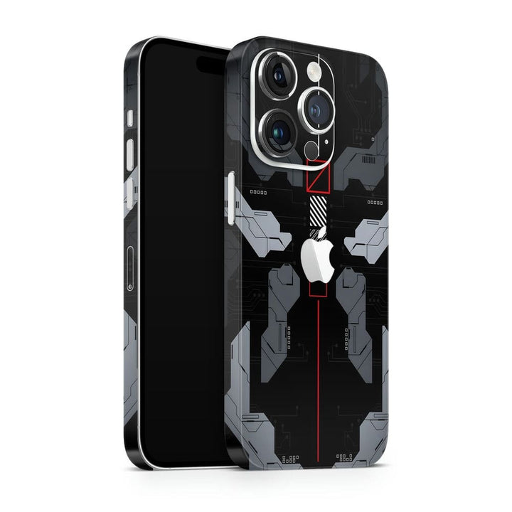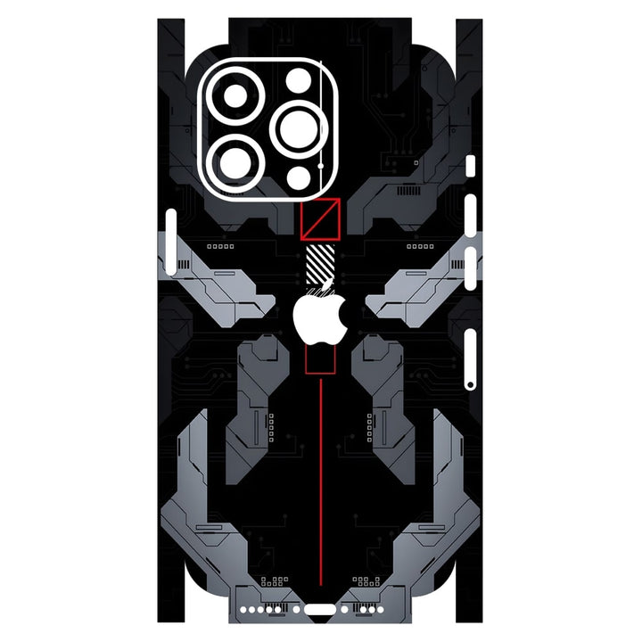 3D Embossed Skin Wrap for Apple iPhone - Black Circuit Red Box