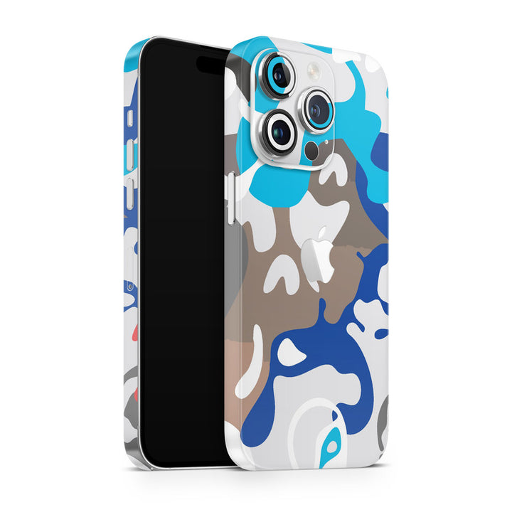 3D Embossed Skin Wrap for Apple iPhone - Blue White Camouflage