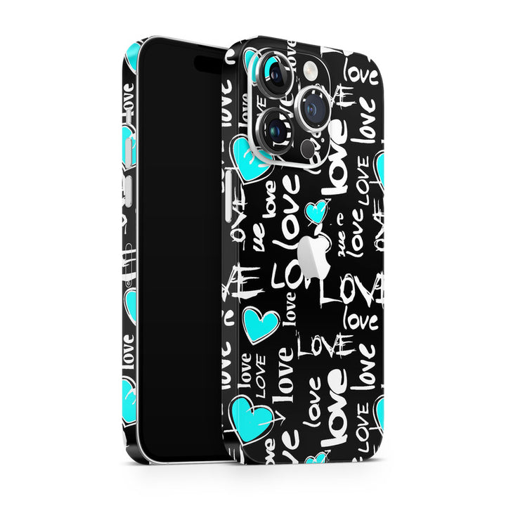 3D Embossed Skin Wrap for Apple iPhone - Cyan Love Symbol