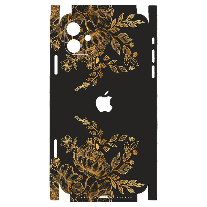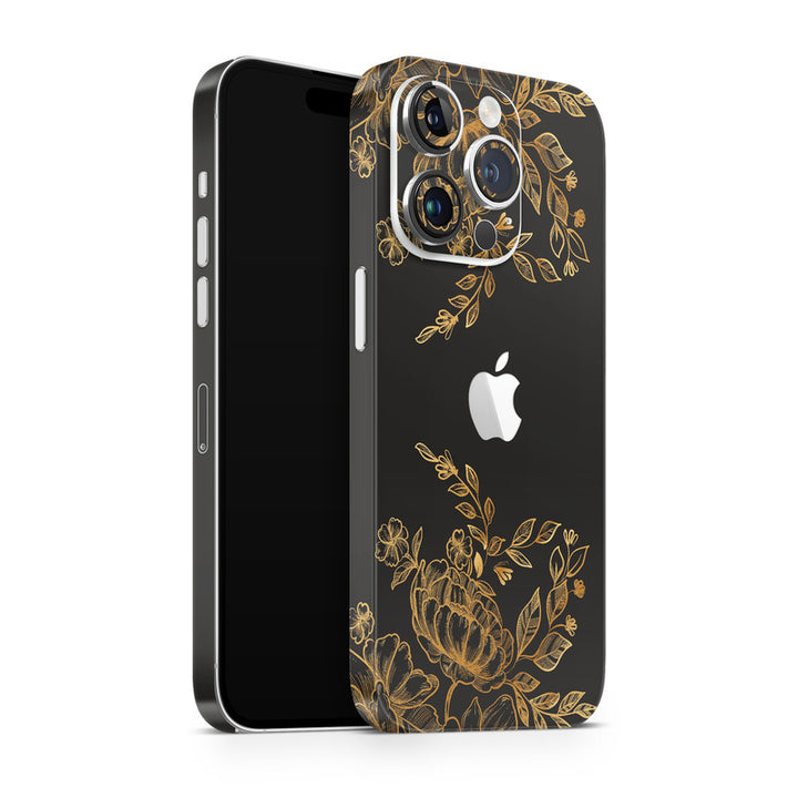3D Embossed Skin Wrap for Apple iPhone - Golden Floral on Black