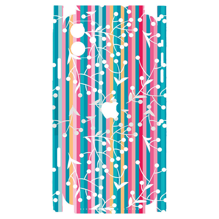 3D Embossed Skin Wrap for Apple iPhone - White Floral on Multi Bars