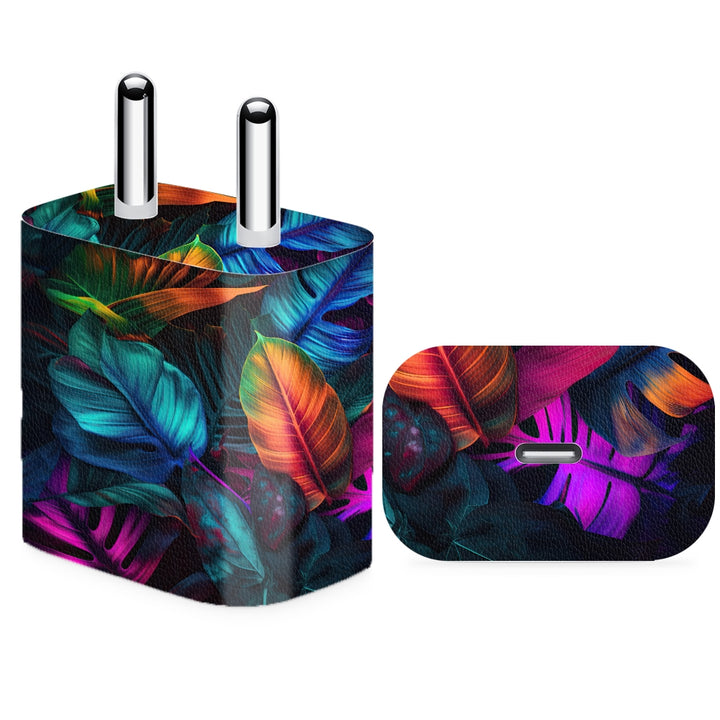 Charger Skin - Fluorescent Color Layout Made of Tropical Leaves