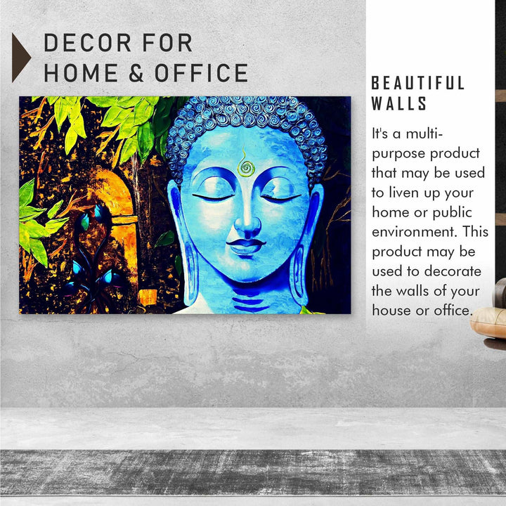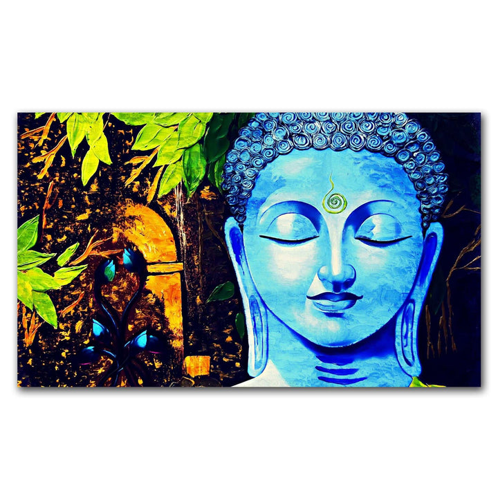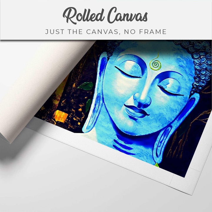 FineArts Rolled Canvas Painting - Blue Buddha Green Leaves Art