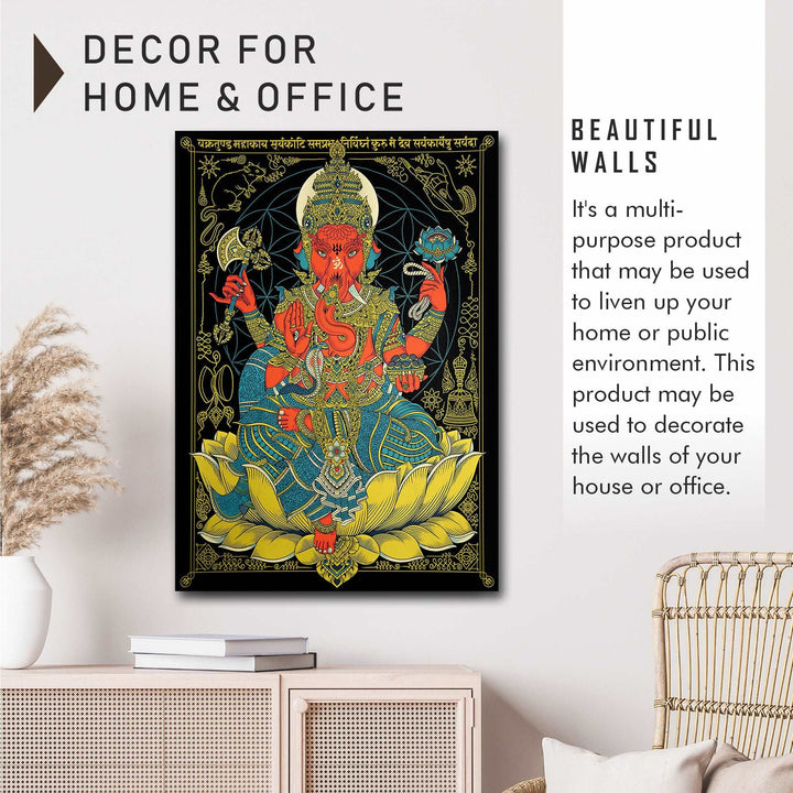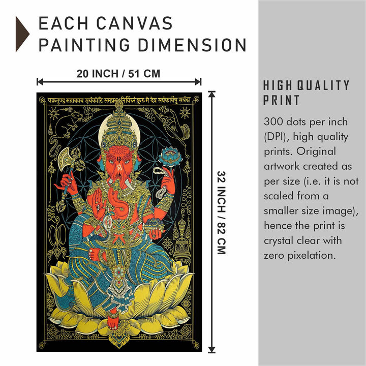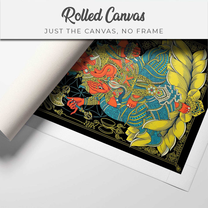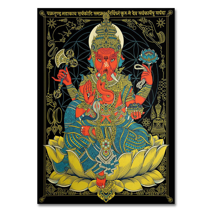 FineArts Rolled Canvas Painting - Lord Ganesh Yellow Flower Black Back
