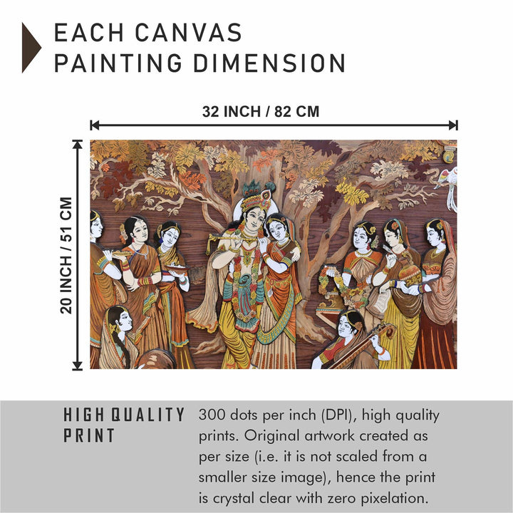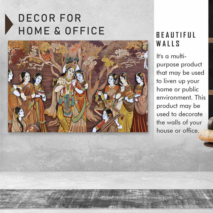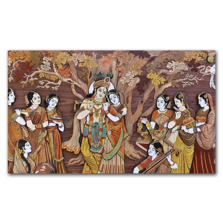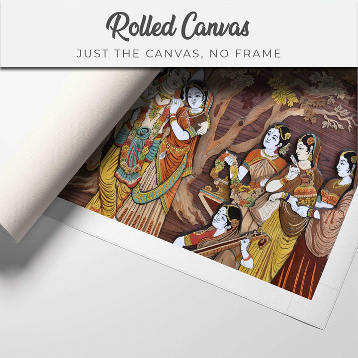 FineArts Rolled Canvas Painting - Radha Krishna on Brown Woden
