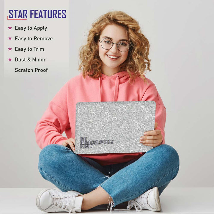 Full Panel Laptop Skin - Be Ridiculously Kind White Floral