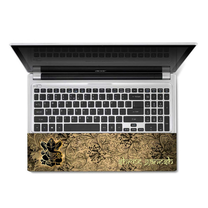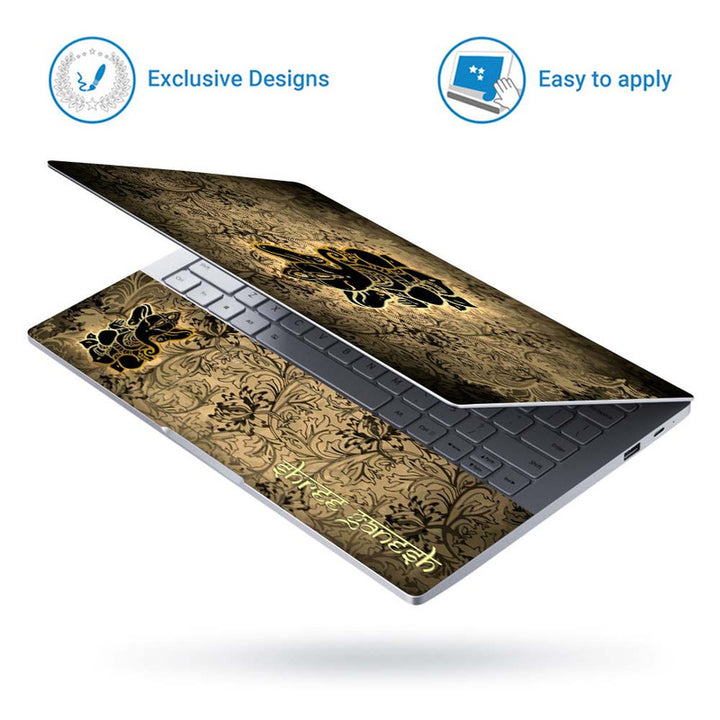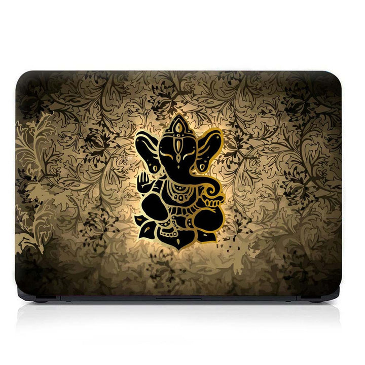 Full Panel Laptop Skin - Black Golden Ganesh on Brown Floral