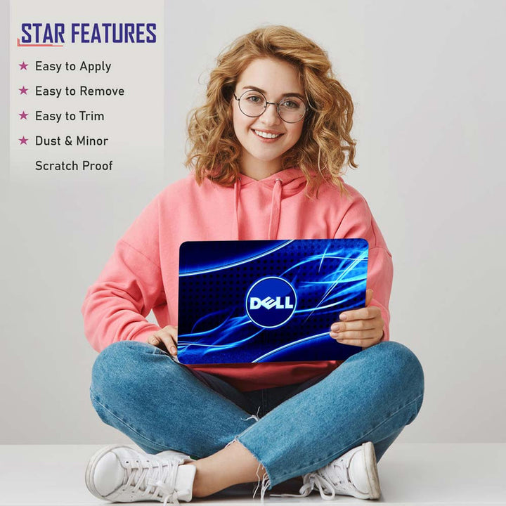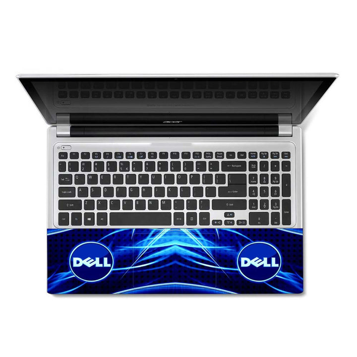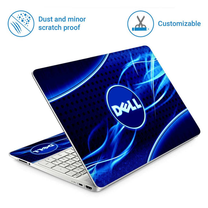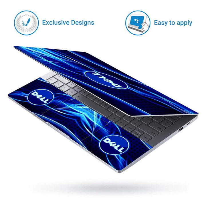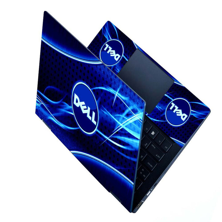 Full Panel Laptop Skin - Dell Symbol on Blue Black Abstract