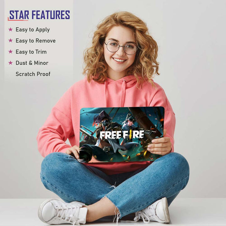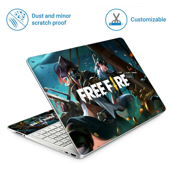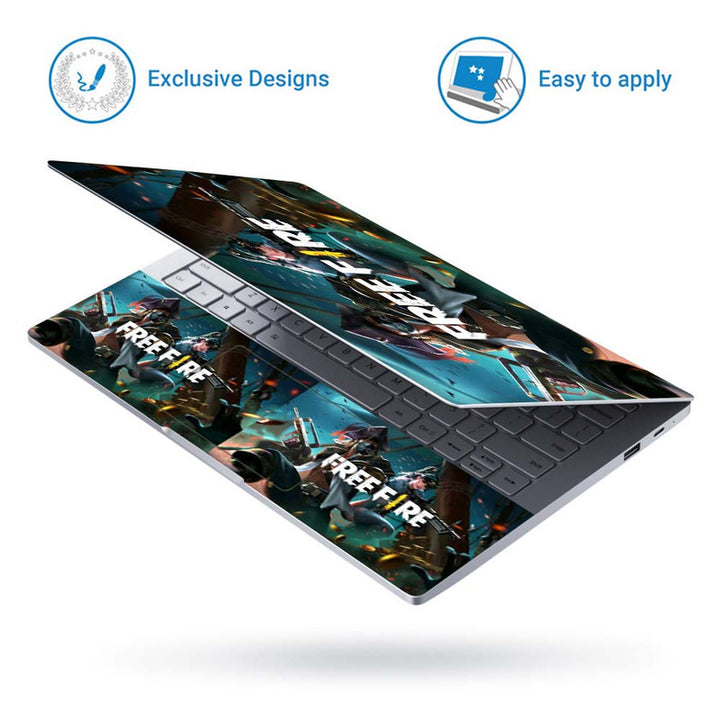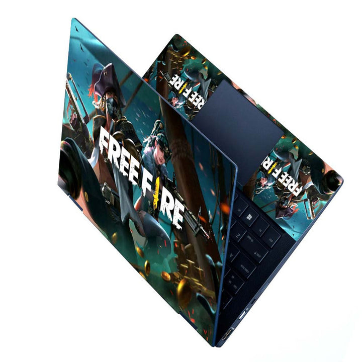 Full Panel Laptop Skin - Free Fire Characters Centre Logo