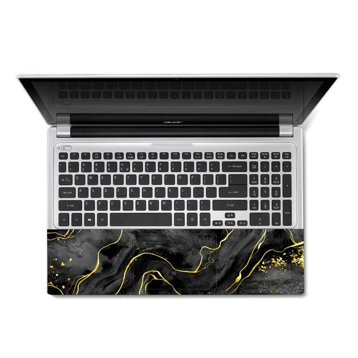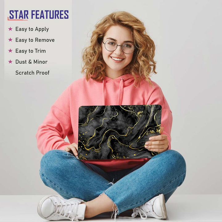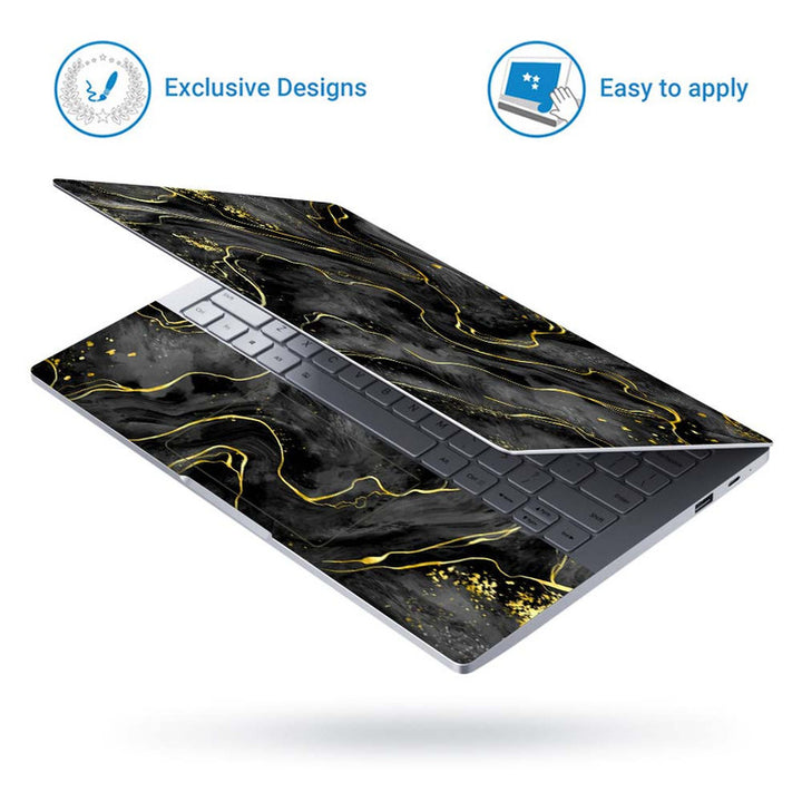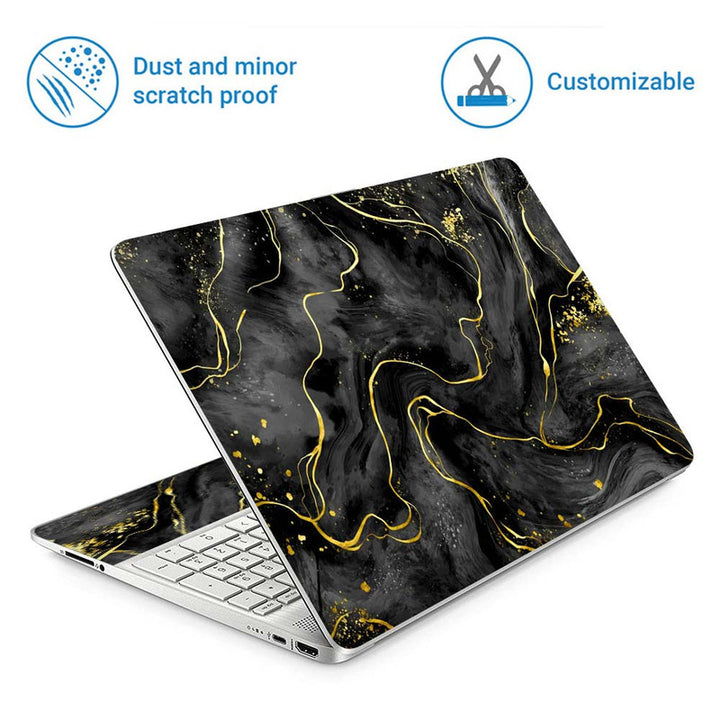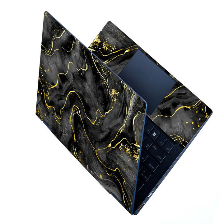 Full Panel Laptop Skin - Golden Effect on Black Marble