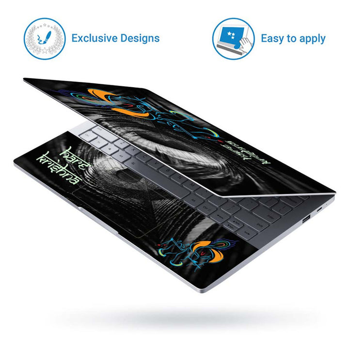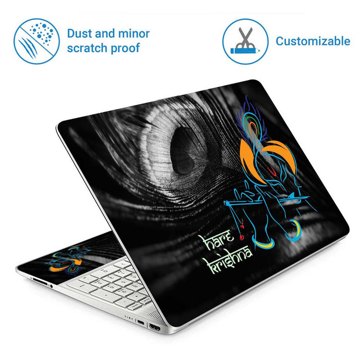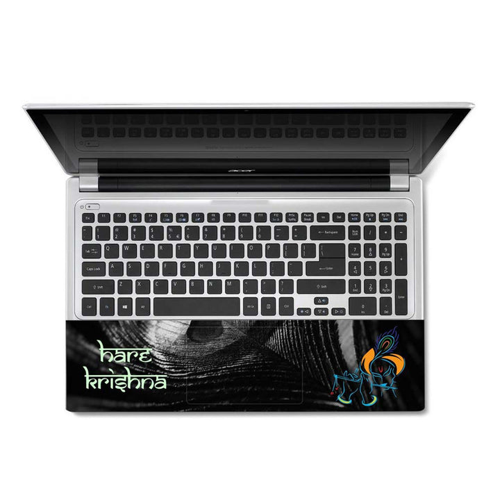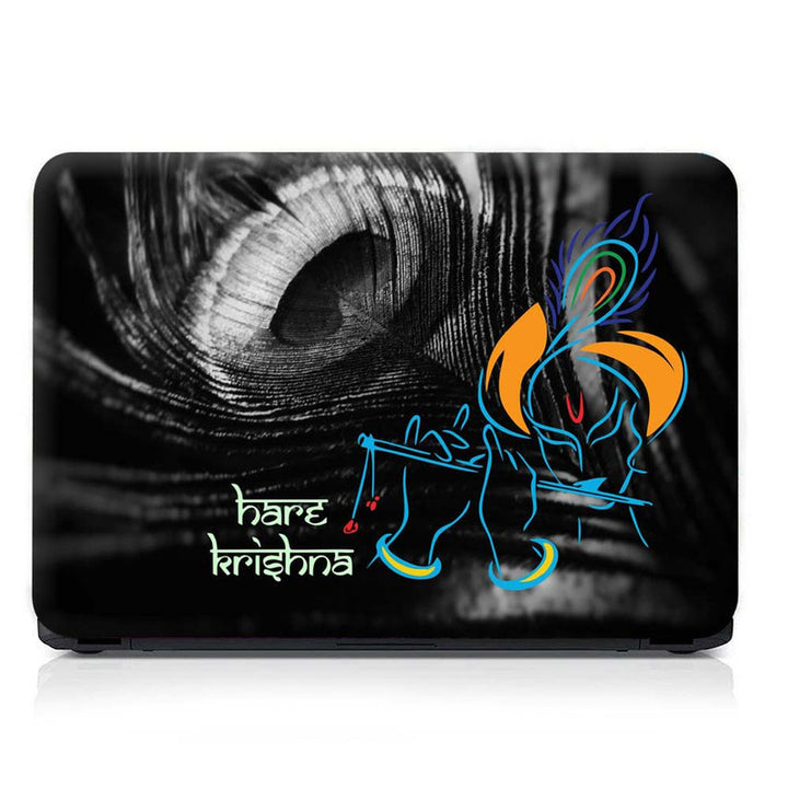 Full Panel Laptop Skin - Hare Krishna on Black Feather