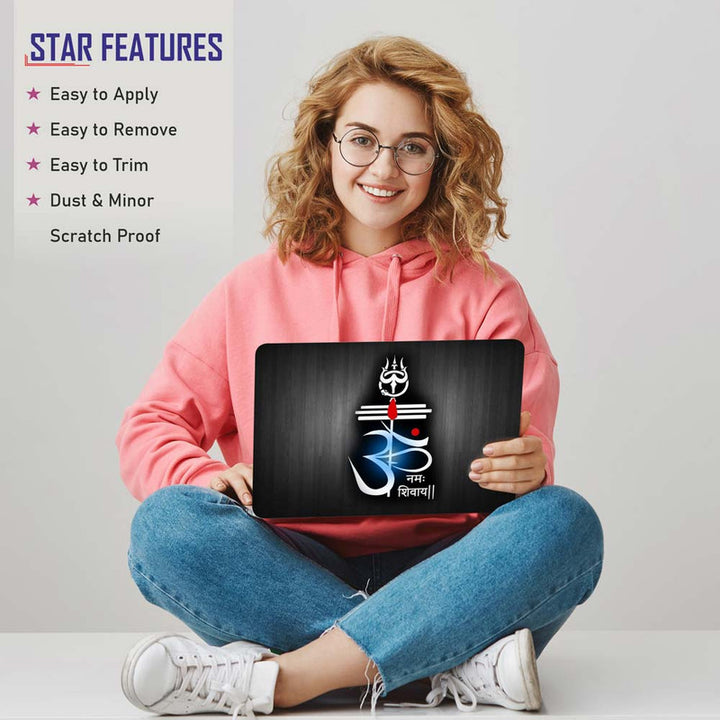 Full Panel Laptop Skin - Om Namha Shivay Blue Circle