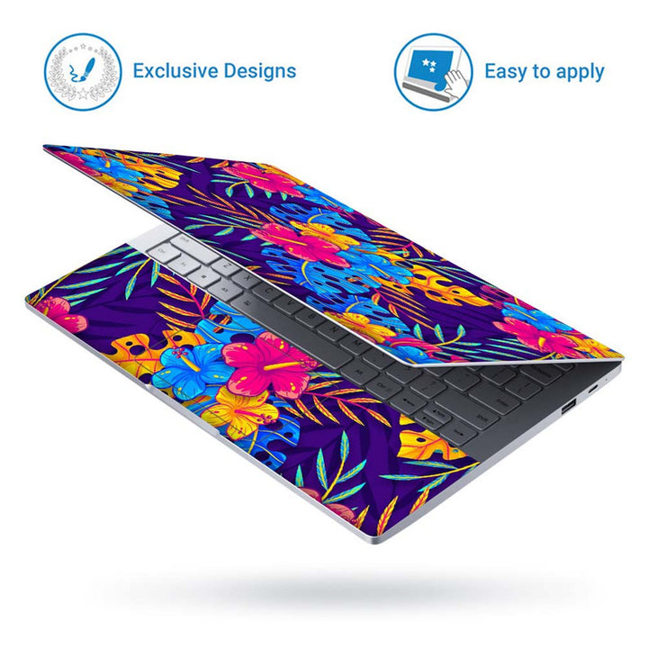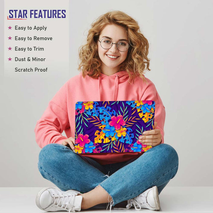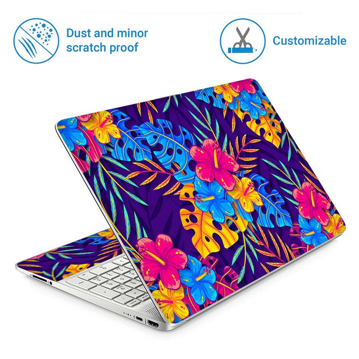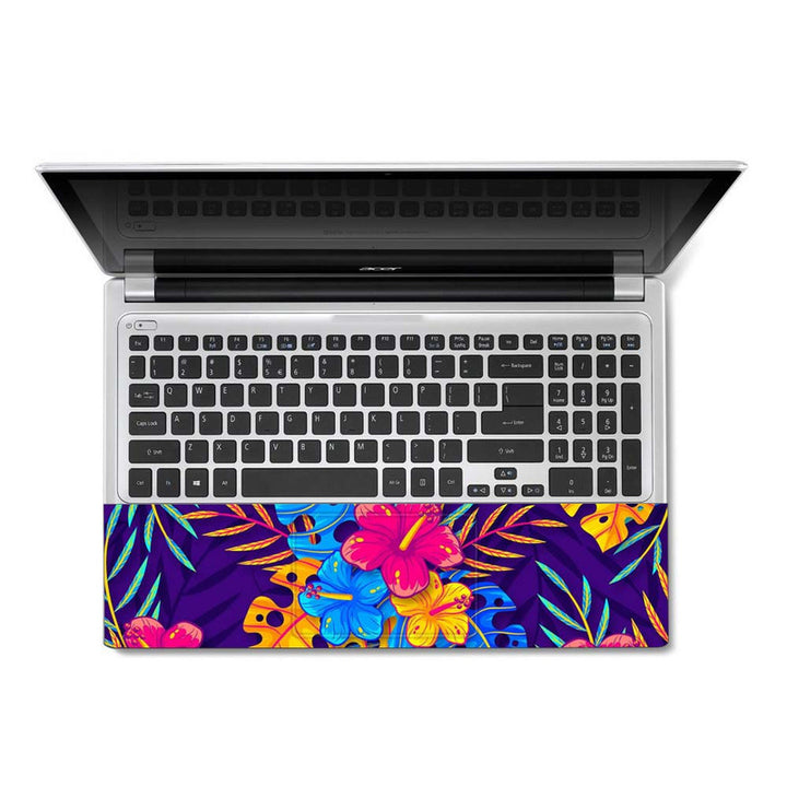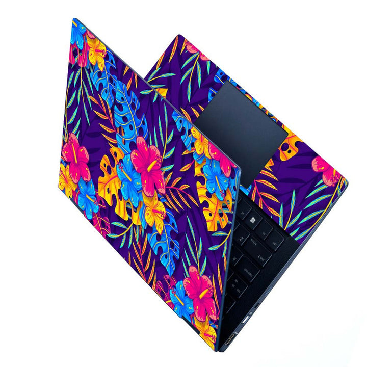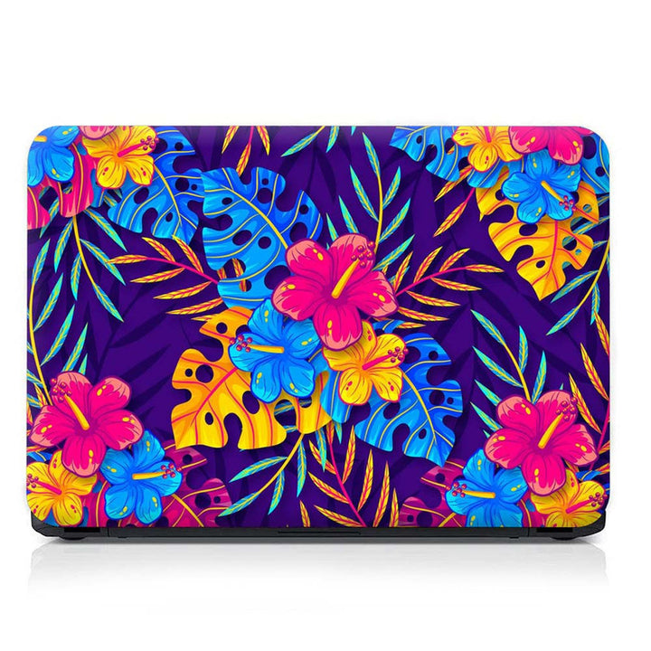 Full Panel Laptop Skin - Pink Cyan Floral and Leaves