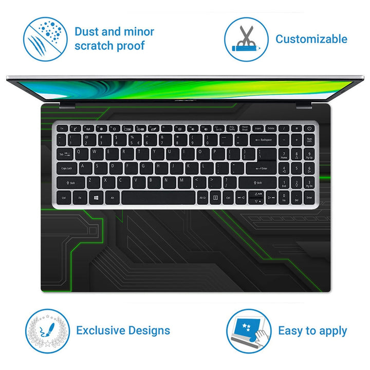 Introducing "Abstract Gradient Black Green Liner" Laptop Skins: Personalize Your Device with Style, Protection, and Your Desired Skin Coverage!