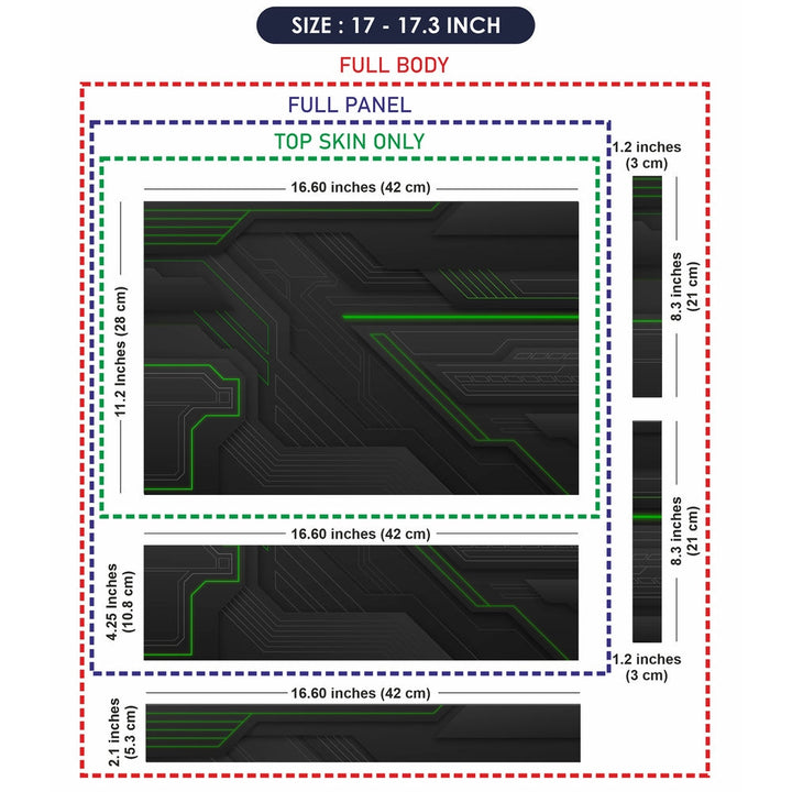 • Full Panel: Full Panel laptop skins provide coverage for the top panel and palmrest area, protecting the most visible parts of your laptop while adding a touch of style and personalization.
