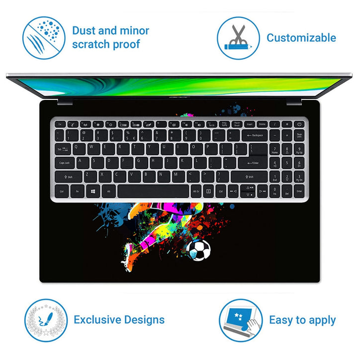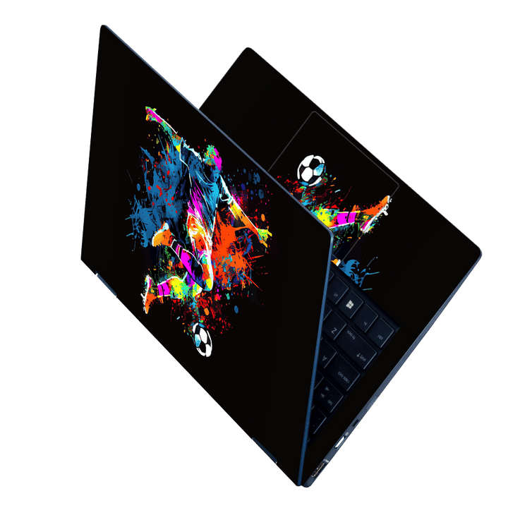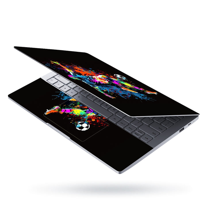 Introducing "Colorful Football Player With Ball" Laptop Skins: Personalize Your Device with Style, Protection, and Your Desired Skin Coverage!