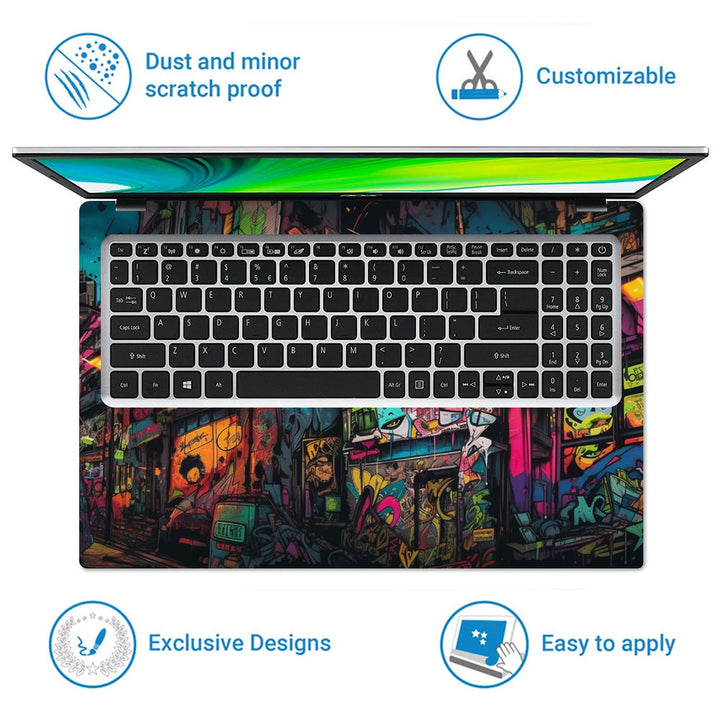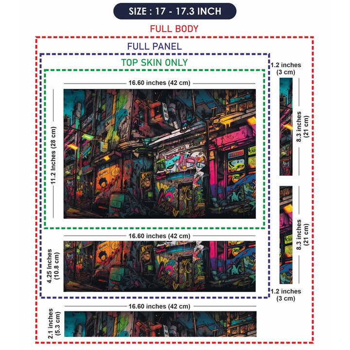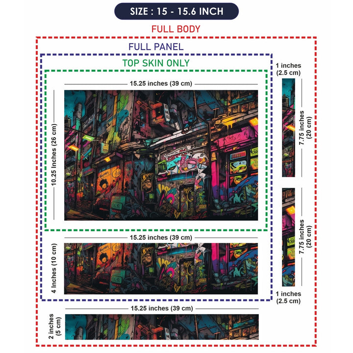 Introducing "Colorful Graffitied Building" Laptop Skins: Personalize Your Device with Style, Protection, and Your Desired Skin Coverage!