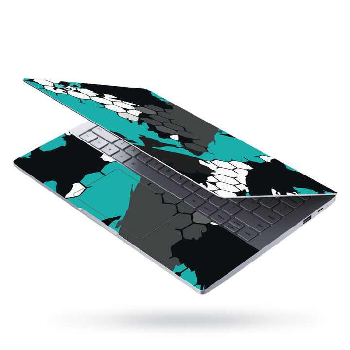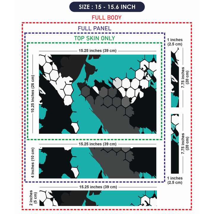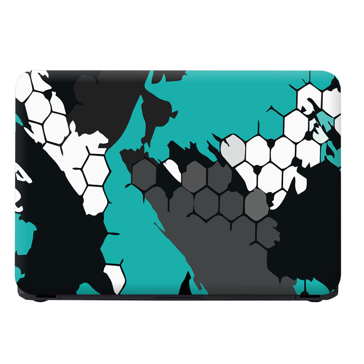Introducing "Cyan Black Honeycomb Art" Laptop Skins: Personalize Your Device with Style, Protection, and Your Desired Skin Coverage!