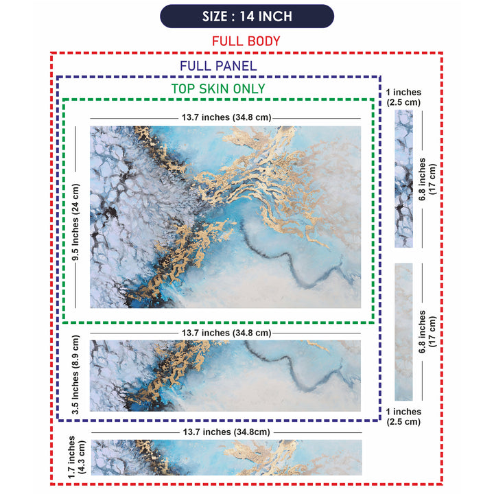 Introducing "Cyan Golden Ocean View" Laptop Skins: Personalize Your Device with Style, Protection, and Your Desired Skin Coverage!