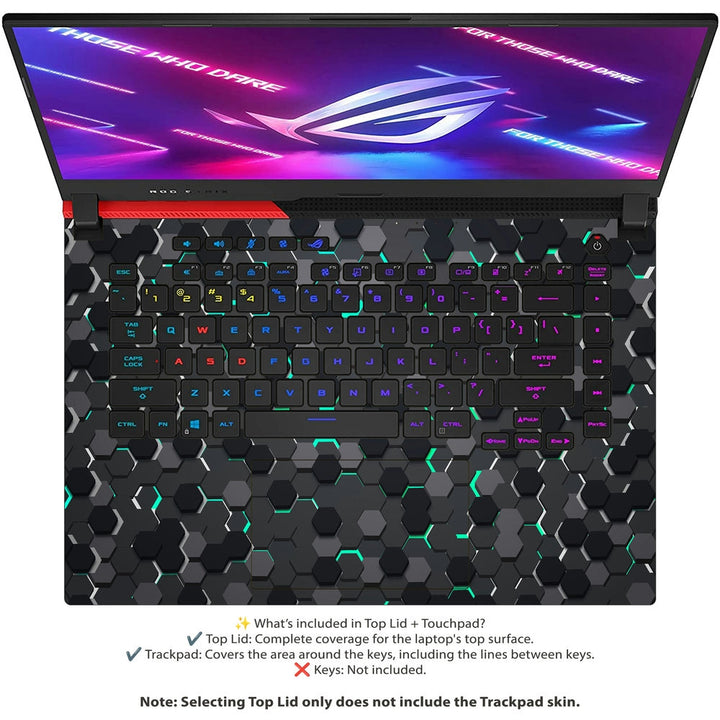 - Superior Protection: The Hexagon Glow skin shields the top panel of your Asus laptop, keeping it safe from everyday damage while maintaining a sleek appearance.
