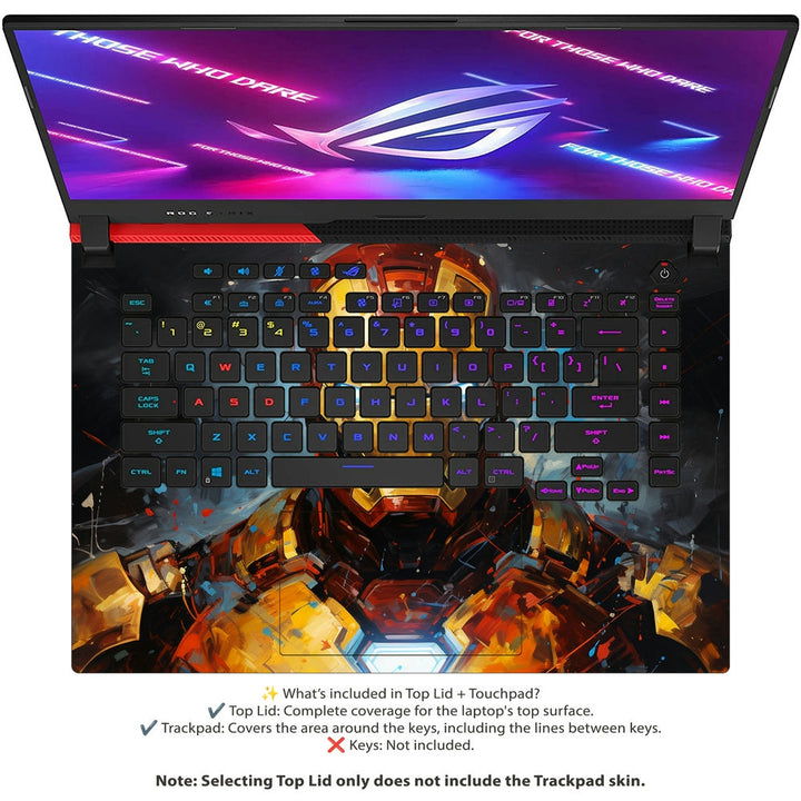 - Superior Protection: The Iron Man Brush Stroke Art skin shields the top panel of your Asus laptop, keeping it safe from everyday damage while maintaining a sleek appearance.