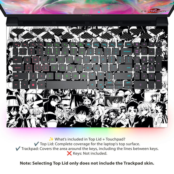 - Superior Protection: The Anime Sticker Bomb BW DS2 skin shields the top panel of your Dell laptop, keeping it safe from everyday damage while maintaining a sleek appearance.