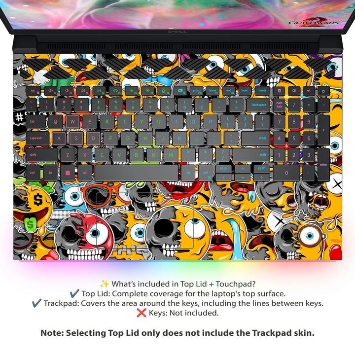 - Superior Protection: The Emojis Sticker Bomb skin shields the top panel of your Dell laptop, keeping it safe from everyday damage while maintaining a sleek appearance.